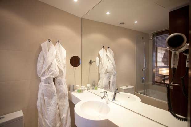 Já os quartos, "todos com propriedade de quatro estrelas", sublinha a empresa com sede em Santiago de Compostela, apresentam características diferentes: as nove suites distinguem-se por uma decoração contemporânea, sofá-cama e cama king size; nos duplos, há possibilidade de escolher entre duas camas individuais e cama de casal (é ainda possível optar entre um quarto regular de 12m2 e um superior com 18m2). Todas as divisões têm televisor de ecrã plano e ligação por cabo, minibar, telefone e despertador, sendo possível o acesso à Internet via cabo ou wireless. Nas casas de banho, estão disponíveis uma série de produtos de higiene ou secador de cabelo. Uma noite pode ser reservada ao preço promocional de abertura de 75€.