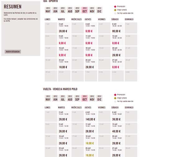 A campanha promete "10 mil bilhetes a 9€" (na versão italiana do site - para o mercado espanhol surgem 1800 disponibilidades, para o mercado português o número não foi revelado) com destino a Veneza (base da companhia), para reservas até quarta-feira, dia 9, e para voar até 27 de Outubro.