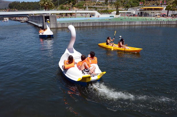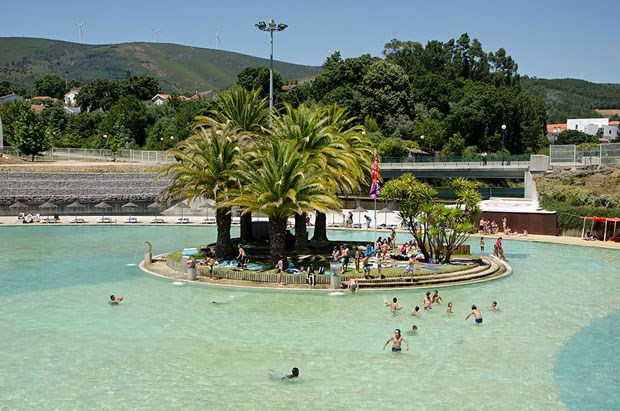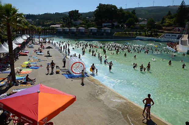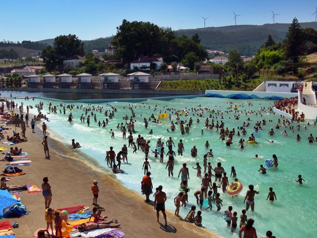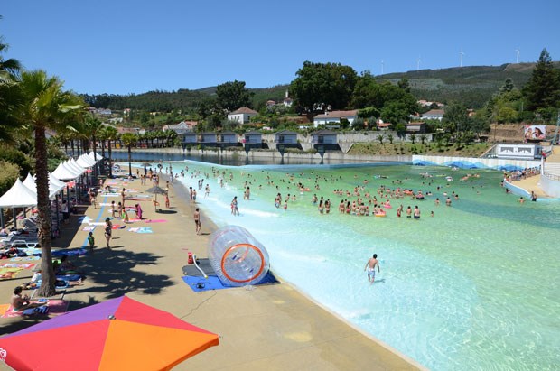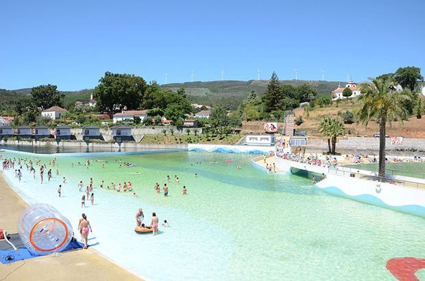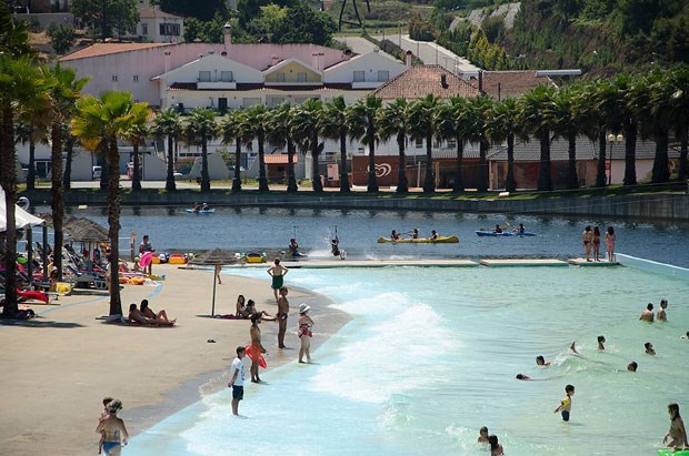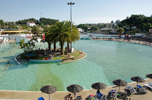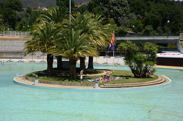 No centro de Portugal, há uma piscina que é um "mar": com 2100 metros quadrados é a maior piscina de ondas do país. A 80 km da costa, integra-se na praia fluvial das Rocas, um verdadeiro complexo de lazer que inclui uma ilha no centro e uma albufeira. Até se pode dormir num veleiro. E o olhar ondula entre palmeiras e a Serra da Lousã...