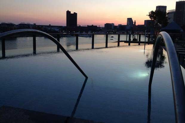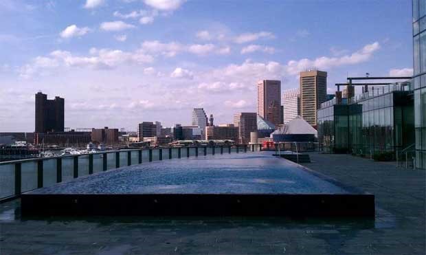 Piscina panorâmica no topo do Hotel Four Seasons de Baltimore, EUA