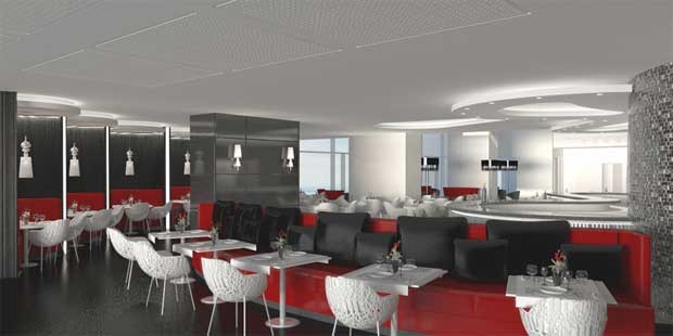 Cereja no bolo: o restaurante panorâmico no topo do edifício. Quando abrir, oferecerá serviço de jantares com altas vistas e zona exterior.