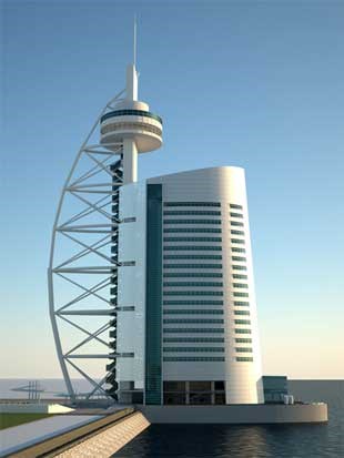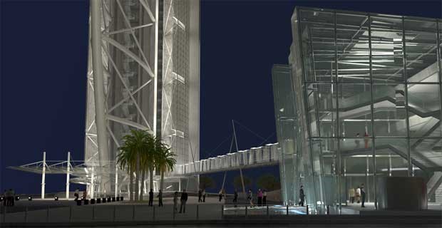 Ao longo do edíficio, que, sem a tocar, acompanha a torre que para sempre significa Expo 98 e se tornou a imagem-chave da Lisboa moderna, um elevador panorâmico poderá ser atracção suficiente para muitos, com direito a grandes vistas sobre Tejo, estuário, Parque das Nações e mais além.