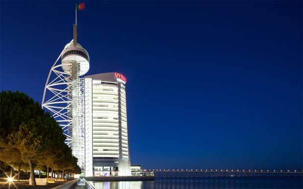 A localização do Myriad é, de facto, soberba, com o rio Tejo aos pés e o edifício mais alto do país, a Torre Vasco da Gama, a conviver consigo paredes-meias. Nos seus 22 pisos, o hotel, projecto do arquitecto Nuno Leónidas, sobe a 140m.