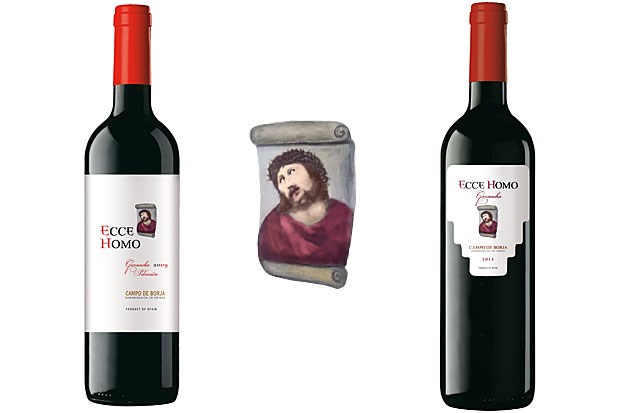 A empresa espanhola Bodegas Aragonesas lançou os vinhos Ecce Homo, néctares "abençoados" com marca e rótulo inspirados na pintura que se tornou um fenómeno mundial após serem-lhe aplicadas as artes de restauro de Cecilia Giménez.