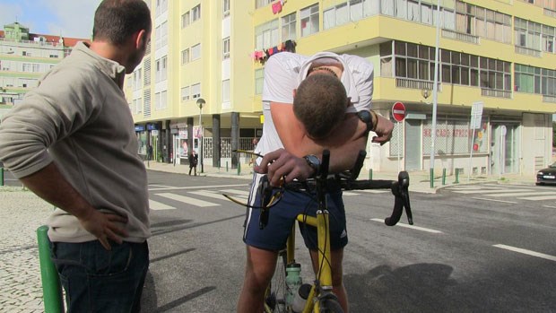 O alemão de 27 anos partiu na manhã de sexta-feira de Lisboa para a última etapa, após um dia extra de descanso - por culpa de umas cãimbras de última hora... -, com chegada prevista à meta, Berlim, antes do final do ano. A passagem em terras lusas teve no entanto um sabor especial: a bordo do "carro vassoura" segue o português Pedro Carvalho.