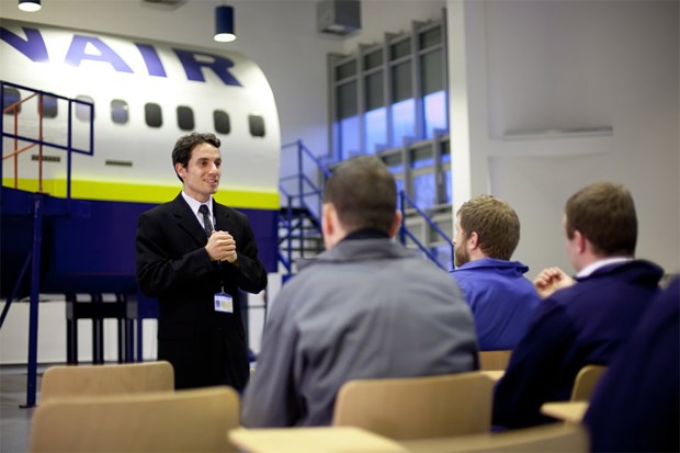 Entre os requisitos para ser aceite no curso de formação Ryanair e candidatar-se aos postos de assistente de bordo, incluem-se, além de ser maior de 18 anos (e ter permissão para trabalhar em qualquer país da UE e passaporte europeu), estar apto fisicamente, possuir "nível de inglês intermédio+", ter entre 1,57m e 1,88m e o "peso proporcional à altura". E é ainda obrigatório "saber nadar" e não ter tatuagens à vista ("tatuagens visíveis não são aceites").