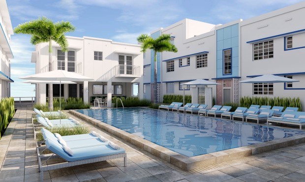 São 97 quartos e suites, além de "dois luxuosos apartamentos com dois quartos cada". A piscina fica situada num pátio central e é complementada com café e bar. O hotel fica a minutos da Ocean Drive, da praia de South Beach e do Miami Beach Convention Center.