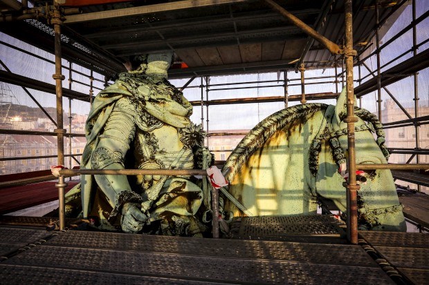 Também no Terreiro do Paço, o trabalho de restauro da estátua equestre de D. José deverá estar finalizado no Verão.