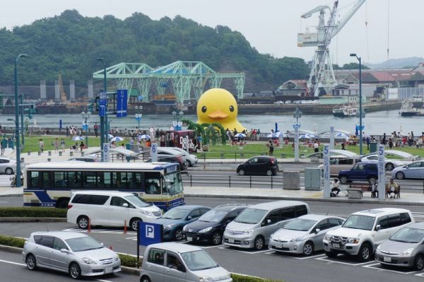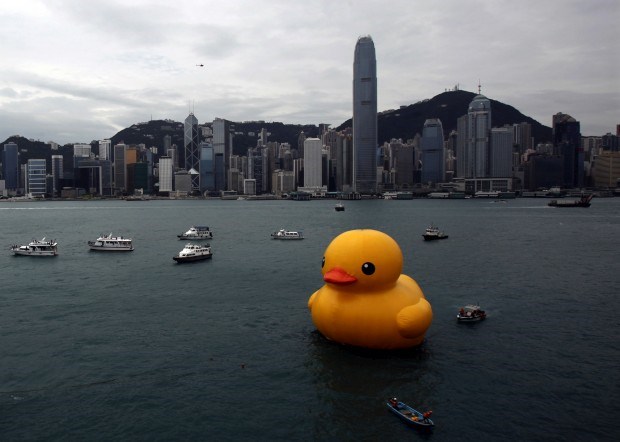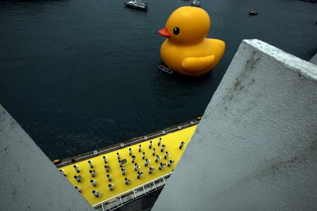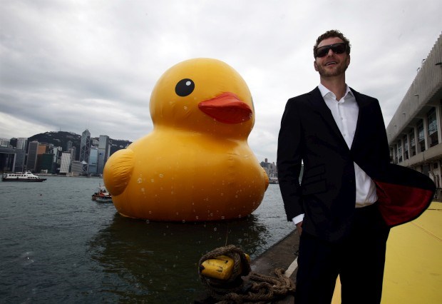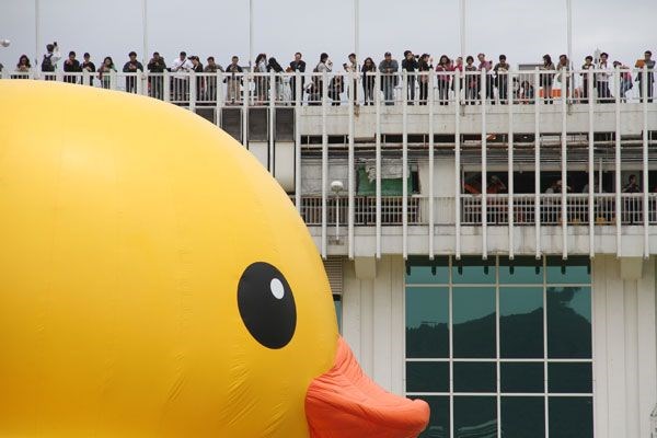 Tem 16,5m de altura, demora uns 30 minutos a insuflar e é um grande viajante. Além de ser, claro, um grande pato. Vai chegando, em diferentes versões, a cidades de todo o mundo e, na semana passada, pousou em águas de Hong Kong, originando mais um "splash" mundial. É que este "Rubber Duck", criado pelo holandês Florentijn Hofman, na sua aparente simplicidade, tem o condão de atrair todos os olhares. E de funcionar como um imenso e simpático "alien" que dá uma nova perspectiva, tão surreal quanto quase-disney, a qualquer cenário.
