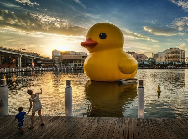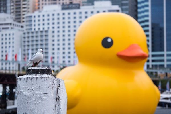 Em cada sítio que o pato aparece é certo e sabido que não faltam relatos de alegria de miúdos e graúdos, além de uma torrente imparável de fotografias. E, claro, de aproveitamentos turísticos e comerciais de todos os géneros, embora não oficiais. Hong Kong é o exemplo perfeito deste efeito. Assim que chegou a Victoria Harbour, o pato tornou-se um fenómeno mundial, na net é um caso sério viral e, de facto, cai que nem uma fábula no cenário do porto, barcos e “skyline".