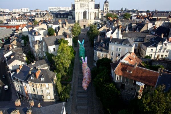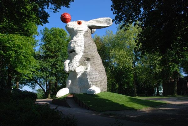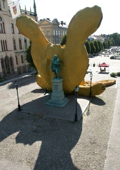 Casos do "Macaco Gordo", no Brasil - uma enorme escultura a partir de 10 mil chinelos de praia, caído num parque; do "Big Yellow Rabbit", um coelho de 13m encostado de cabeça para baixo a uma estátua na Suécia; uma "Mosca Muerta" colocada no topo de um edifício no México; um urso de 11m com uma almofada debaixo do braço em Amesterdão; um coelho de 12m de altura em Nijmegen (Holanda), no qual se podia entrar no interior, subir escadas e espreitar a paisagem a partir de um miradouro no nariz vermelho da escultura; um pastor alemão de 25m a guardar uma quinta em Leens; ou três grandes pianos em madeira, jogados na costa holandesa como náufragos.