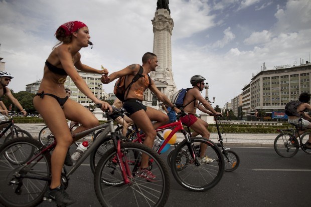 Ciclistas de todas as idades vão pedalar “o mais nu que conseguirem” numa iniciativa a favor dos transportes não poluentes a 8 de Junho, em Lisboa, do Parque Eduardo VII à Torre de Belém.