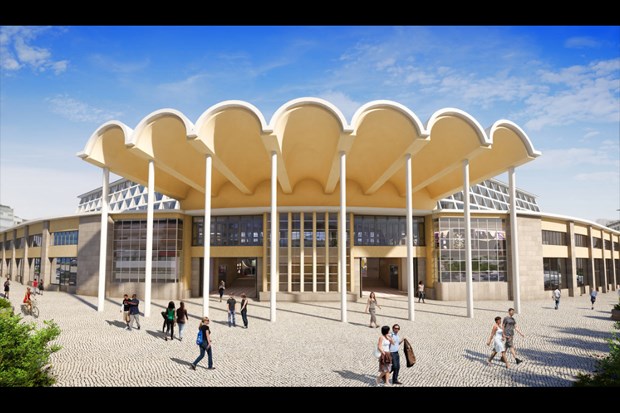 O edifício do mercado, desenhado em 1949 pelos arquitectos Fortunato Leal, Cunha Leão e Morais Soares, teve interiores renovados com a assinatura de Rosário Rodrigues de Almeida, do ateliê FA Arquitectos.