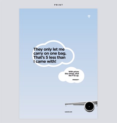Muitas pessoas viajam com a Ryanair e algumas pessoas queixam-se da Ryanair. Hugo Gstrein aproveitou a deixa para criar "With prices this cheap, shut the f*ck up", campanha publicitária premiada com o ouro na recente edição dos Clio Awards.