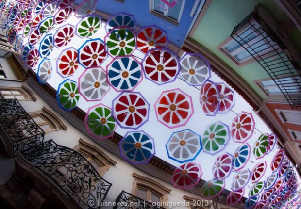 O colorido onírico do conjunto de chapéus-de-chuva instalados por ruas da Baixa desta cidade do distrito de Aveiro nem é novidade: já no ano passado, foi um êxito mediático e de visitas. Por isso mesmo, a chuva de chapéus voltou este ano e é uma das atracções do festival AgitÁgueda 2013, programa de animação que decorre em Julho, de 6 a 28, na cidade (e também há exemplares nos céus da tenda onde decorre o certame).
