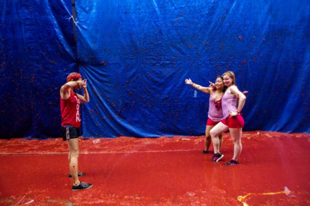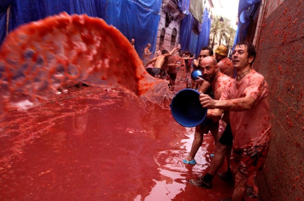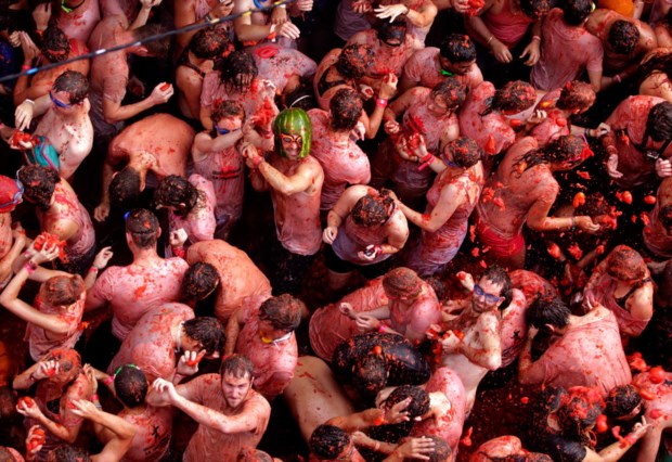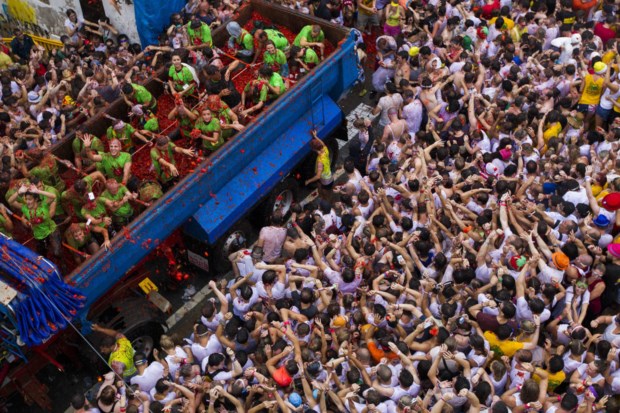 A Tomatina 2013 ficou marcada pela chuva (literalmente) mas, principalmente, pela "privatização": participar no megaevento de Buñol (Valência, Espanha) onde se lançam tomates como que se não houvesse amanhã deixou de ser grátis e passou a custar 10€. Só não pagam os cidadãos do município. No total, nesta quarta-feira, participaram cerca de 20 mil pessoas, com 15 mil a pagar entrada.