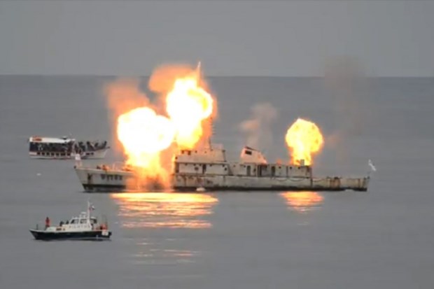 “A menos de dois dias do afundamento foram colocados os explosivos em quase todos os locais do navio para que tudo corra conforme o planeado, à semelhança do que sucedeu com os anteriores três navios”, sublinhou Alberto Brás.