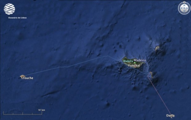 Há mais duas grandes tartarugas marinhas a nadarem no Atlântico. "Daisy" e "Touché" foram "reintroduzidas ao largo das ilhas Desertas", "com um transmissor via satélite que permitirá o seu acompanhamento no oceano", no dia 1 de Novembro.