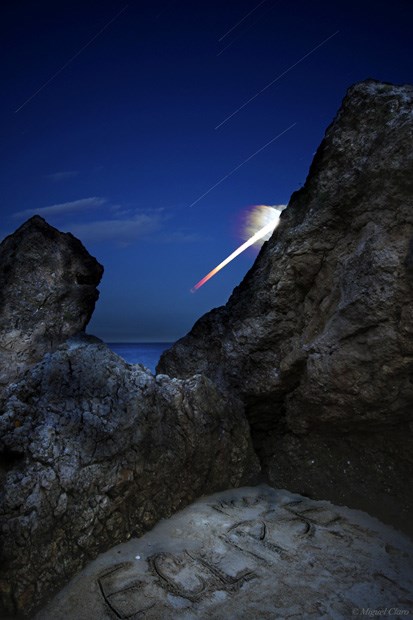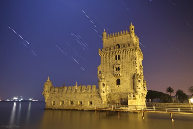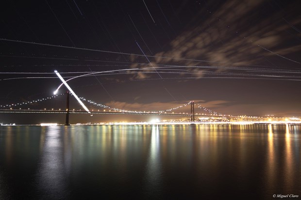 São visíveis vários rastos de aviões que se movimentam em direcção ao aeroporto de Lisboa, assim como o rasto da Lua Crescente e de algumas estrelas da constelação de Andromeda, Pegasus e Carneiro. Junto ao horizonte lisboeta é ainda visível o rasto luminoso de um navio que se movimenta em direcção ao Oceano Atlântico.