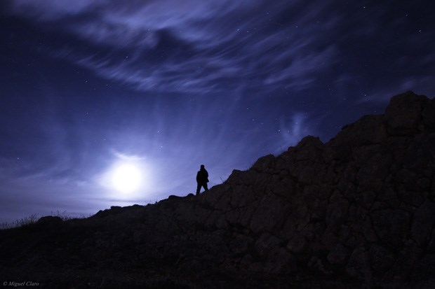 Luar numa noite estrelada e simultaneamente enevoada. Na zona rochosa do Cabo Espichel a 168m de altitude.
