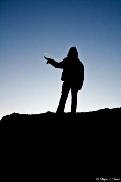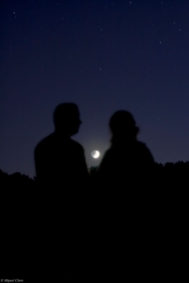 “Quando tirei esta foto estava no meio de um campo no Alentejo”, “acompanhado pela minha sobrinha Débora. Ela estava ansiosa por ver a lua e perguntou-me se a lua estava muito longe de nós. Respondi-lhe: ‘Depende, minha querida, a distância pode ser aparente e relativa mas em termos astronómicos a lua está muito perto de nós. Eu mostro-te, queres ver?' 'Sim', disse ela. E eu respondi-lhe: 'Então, só precisas subir as escadas e trazer-me a lua'.”