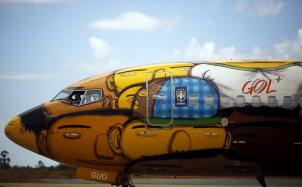 Cem mil latas de spray depois, o resultado é um Boeing 737 grafitado de alto a baixo. O convite à mais famosa dupla brasileira de artistas de rua, os manos Otávio e Gustavo Pandolfo, mais conhecidos como Os Gémeos – que também têm obras em Lisboa –, partiu da Gol, a companhia aérea escolhida para transportar a selecção do Brasil durante o Mundial de futebol que vai decorrer no país.