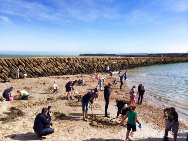 A maré cheia prolongou-se até perto das 16h e, desde então, uma maré de gente invadiu as areias douradas de Folkestone. O jornal The Guardian tem mesmo um blogue em directo que regista esta caça ao tesouro e vai resumindo os acontecimentos e achados. "Às 15h50, cerca de 50 escavadores a sério. às 16h pelo menos 100. às 16h10 pelo menos 150...", resumem.