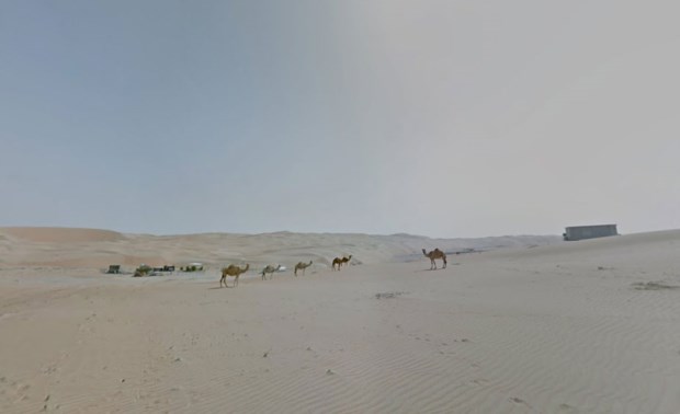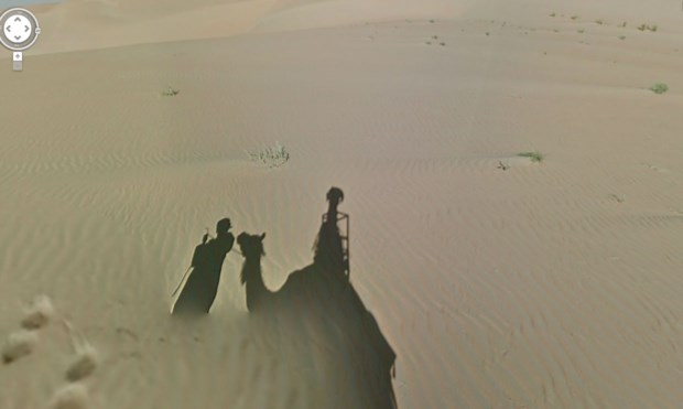 As câmaras do serviço Street View do Google são habitualmente montadas em carros, barcos ou mesmo pessoas, mas para captar a magnífica paisagem do deserto árabe o enorme equipamento usado para recolher imagens foi colocado num camelo. O objectivo é dar uma ideia dos caminhos que são percorridos nos últimos 3000 anos pelos viajantes e comerciantes que ainda se deslocam em caravanas com o camelo como transporte.