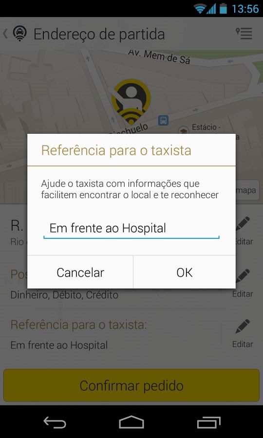 Para o utilizador são enviadas todas as informações do motorista e do veículo, sendo possível acompanhar a aproximação do táxi pelo mapa que integra a aplicação.