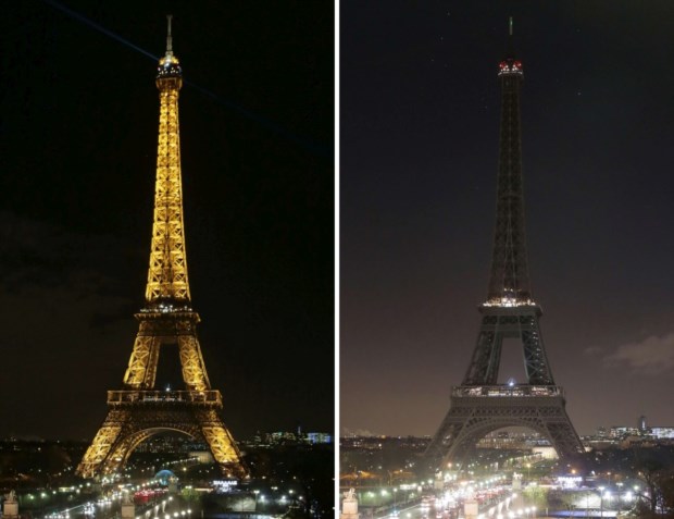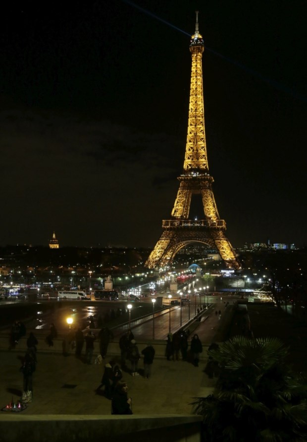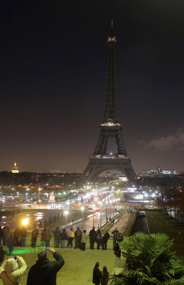 As luzes foram apagadas às 20h locais de Paris (19h em Lisboa), com a torre a desaparecer ponto por ponto na noite.