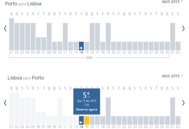 No site da empresa surgem vários voos com bilhetes a 5 euros por trajecto, preço final a que apenas falta acrescer a taxa por pagamento com cartão de crédito (0,2% do preço total da compra).