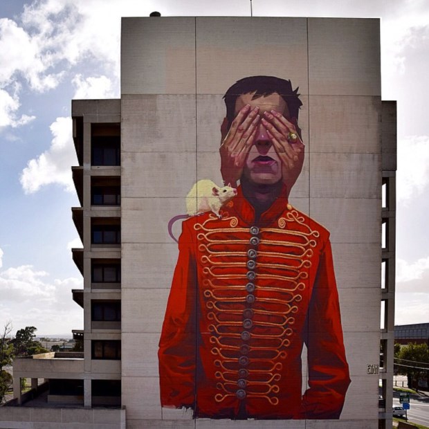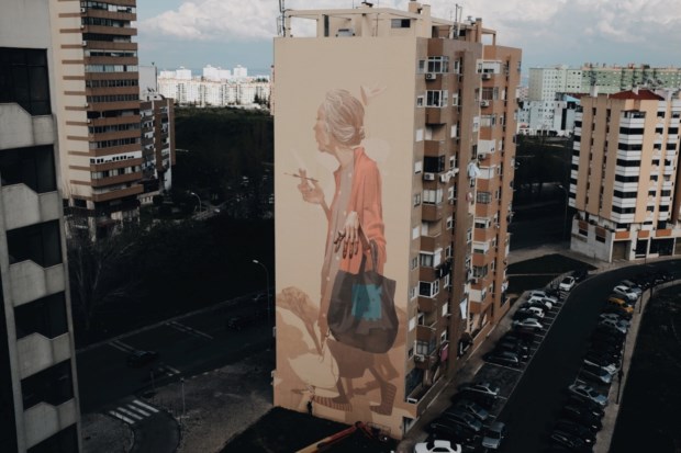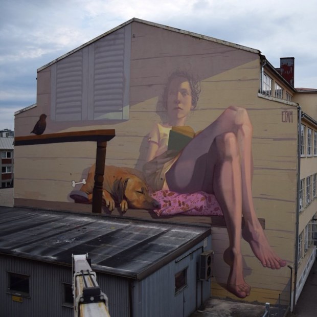 A obra mais chamativa de Sainer, da dupla Etam Cru, foi terminada esta semana. Não só precisou de ajuda de grua para chegar ao seu término como é um êxito tanto in loco como na net (multiplicam-se pelas redes sociais as fotos e partilhas).