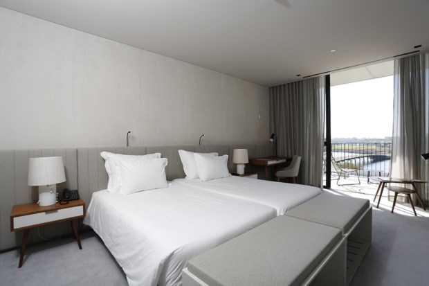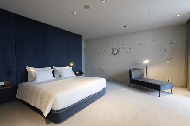 A ligação ao edifício contemporâneo é, depois, feita através de uma escada metálica em espiral que associa os dois espaços. No novo edificado, que conta com uma visão privilegiada sobre o Rio Boco, braço da Ria de Aveiro, encontram-se 72 quartos, dos quais três suites, “com todas as comodidades de uma unidade de luxo”, assegura o Grupo Visabeira.