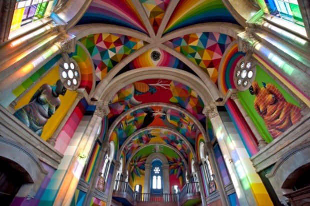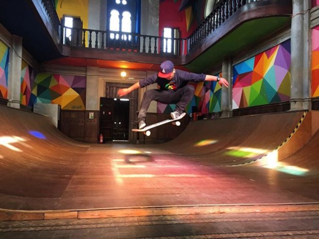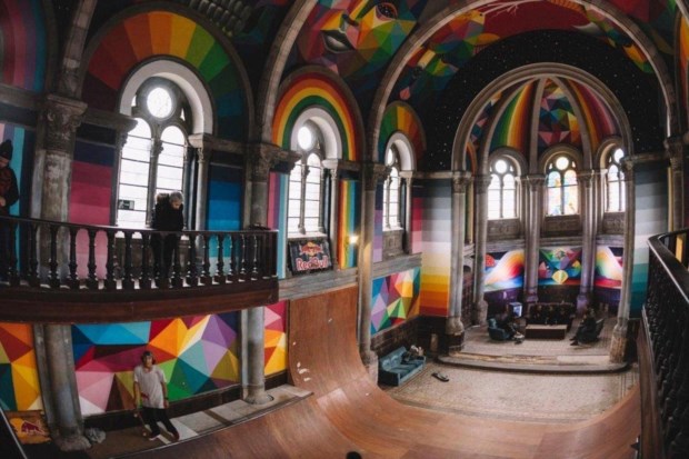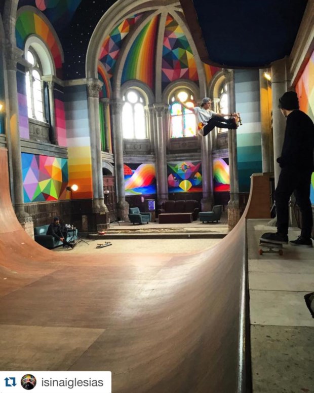 Através de meios de financiamento colectivos gerados na internet (crowdfunding), e também com apoio de alguns patrocinadores, o colectivo conseguiu gerar receitas de forma a colocar rampas no interior da igreja, decorando-a com arte urbana assinada pelo artista Okuda San Miguel,especialista em figuras geométricas coloridas. Foi ele que cuidou também do tecto do espaço, fazendo com que ficasse coberto pelas cores do arco-iris, iluminado pelas janelas durante o dia.