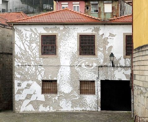 Vhils completou na passada sexta-feira, dia 8 de Abril, a sua segunda obra no Porto, a primeira num espaço público — que pode ser vista e fotografada 24 horas por dia.