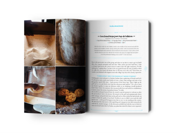 Agora imagine-se a vislumbrar a Arrábida enquanto come o choco. Seguinte. Aprecie uma chanfana olhando para a quase milenar universidade de Coimbra. Volte à serra, ao Gerês e coma um bacalhau à minhota. Siga em frente. Coma umas lulas grelhadas ao fim do dia na praia do Furadouro, ou nas “normalmente esquecidas pelos portugueses, as praias desertas do Oeste Atlântico: Leirosa, Osso da Balaia, Vieira”. Folheie. Participe numa matança de porco em Terras de Bouro. Volte ao inicío. Dê uns mergulhos e no intervalo coma uns choquinhos à algarvia. Páginas 288 e mais de 50 receitas tradicionais são o resultado desta viagem de 32 dias.