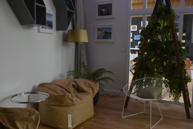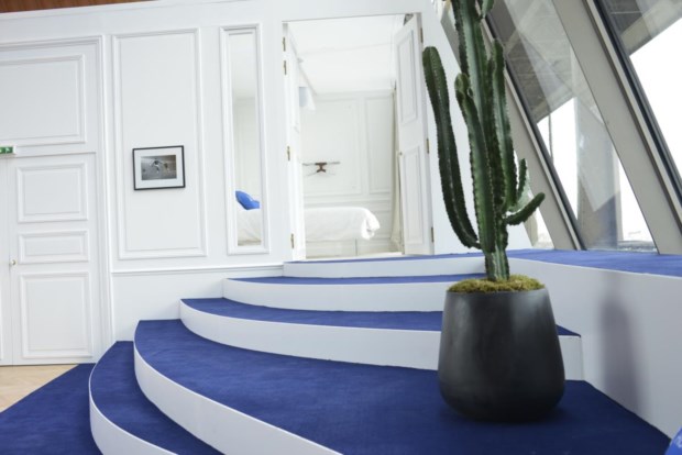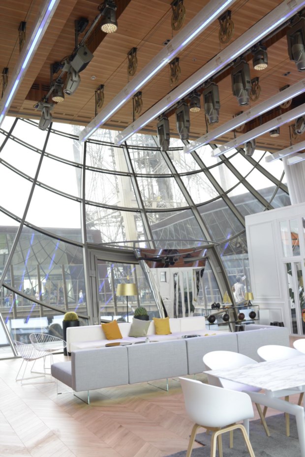 O que era uma sala de conferências vazia deu lugar a um apartamento “luxuoso”. O andar que acolherá milhares de pessoas foi decorado em apenas 48 horas pelo designer de interiores Benoit Leleu e respira a febre do futebol vivida na capital francesa. Leleu inspirou-se no estilo parisiense Haussmann e com toques modernos apostou em pormenores ligados ao desporto com taças, chuteiras, quadros com fotografias de jogadores de futebol ou camisolas a integrar a decoração em tons de azul, branco e dourado. O apartamento temporário de 185m2 conta com uma área de convívio confortável, dois quartos mobilados, matraquilhos e uma estufa urbana.