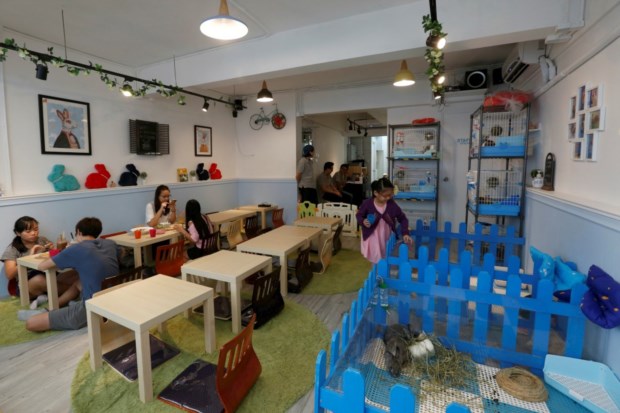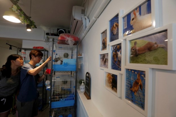 O espaço foi inaugurado este mês na Causeway Bay e, para começar, é casa de 12 coelhos - que tinham sido abandonados ou teriam outro destino, provavelmete alguns, também num café-restaurante, mas mais na cozinha do que na sala de estar.