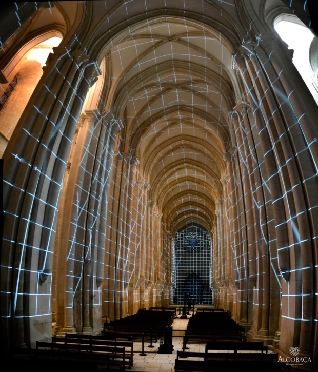 De 17 a 20 de Novembro, a nave central da igreja transforma-se num palco com cerca de 5200 metros quadrados, onde os tectos, as paredes, as abóbadas e até os túmulos de D. Pedro I e D. Inês de Castro se emprestam como cenário de iluminuras, códices produzidos pelos monges de Cister ou Génesis, a primeira de dez cenas que compõem o espectáculo.