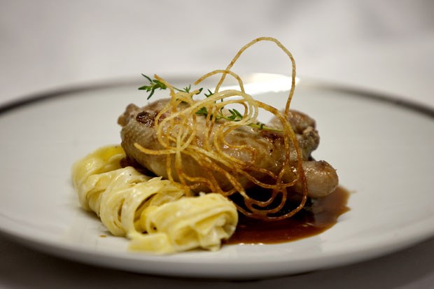 Quando se pensa no cinema de Hitchcock a comida não é a primeira coisa que nos ocorre. Mas quando Vasco Câmara foi desafiado a pensar num realizador que tivesse uma relação particular com a comida, foi precisamente em Hitchcock que pensou - "Hitchcock e os ovos", disse. E, à mesa do Eleven, uma das imagens que nos apresentou foi a de uma mão que apaga um cigarro numa gema de ovo (a cena é do filme "O Ladrão de Casaca", de 1955, o mesmo em que Cary Grant serve uma quiche loraine na sua villa, um prato de massa delicada feito por uma cozinheira "de mãos sensíveis", que em tempos estrangularam um general alemão "sem qualquer ruído").