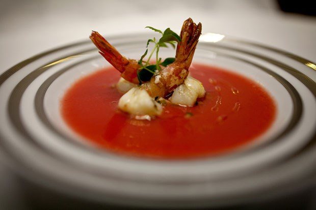 E pronto, ali estamos nós, sabendo já demais, perante o gaspacho criado pelo chefe Joachim Koerper (acompanhado por um Avidagos Branco 2010, Douro) - uma sopa que nos fez mergulhar de cabeça no universo do crime.