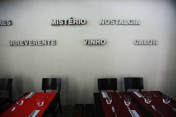 O estilo é moderno e informal, ocupando todo o piso térreo de um dos velhos edifícios até agora em processo de degradação. Além da sala de entrada, escassamente iluminada e com capacidade para umas 40 pessoas, há também um simpático e arejado terraço onde se podem sentar à vontade mais umas 20 pessoas. Mesas e cadeiras em plástico com vocação para esplanada de Verão, mas também apetrechado com os aquecedores-chapéu para os dias menos acalorados e secos. Foi aqui que, atraídos pela luminosidade, nos sentámos para degustar as propostas de uma carta que se apresenta em cinco capítulos: petiscos, peixes, carnes, pastas e doces tentações.