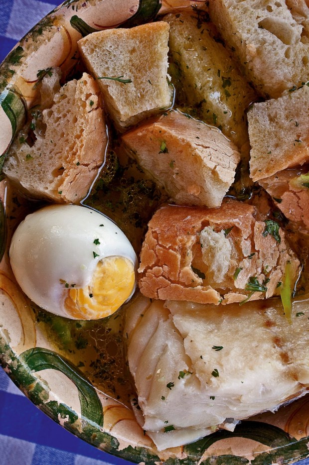 Água limpa, pão migado, salsa e coentros, dois dentes de alho e um fio de azeite. A receita de base é bem simples, com aquilo que a natureza dá e está ao alcance de todos e que se vai depois enriquecendo a gosto e ao sabor das disponibilidades.