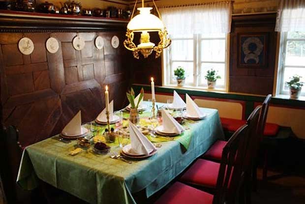 E não é só o que se come que faz o encanto desta casa. Vista por fora, a estalagem, a fazer jus ao nome (a tradução de Hvidsten Kro é Estalagem da Pedra Branca), é alva, com as empenas em preto e telhado de colmo. O interior está dividido em pequenas salas, recheadas de bibelots, pinturas e fotografias que tornam o espaço um pequeno museu.