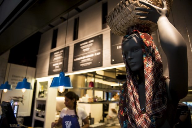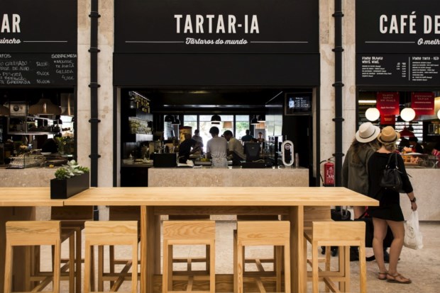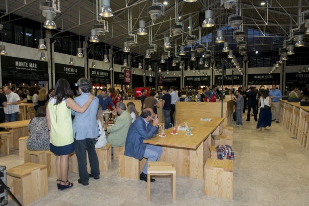 As obras prolongaram-se por oito meses e duraram até ao último minuto, mas no sábado estava tudo pronto, com as equipas dos vários restaurantes a esperarem, ansiosas, a chegada dos convidados. O espaço, que é separado da zona do mercado onde se vende a fruta, as hortaliças, o peixe e a carne, é muito grande, e os restaurantes estão organizados a toda a volta, enquanto o centro é ocupado por mesas altas de madeira, e cadeiras, que permitem que muita gente se sente (o projecto de arquitectura da remodelação do mercado, assim como o mobiliário, é da autoria dos arquitectos Aires Mateus). Tudo dependerá da afluência mas este é, de facto, um espaço preparado para receber muita gente: pode chegar às 750 pessoas sentadas dentro do mercado mais 250 no exterior.