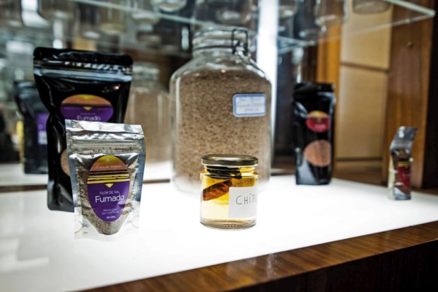 Mas Gerd Schmidt-Stosberg é cauteloso, e por enquanto só permite que se coloque à venda a flor de sal, em três variedades: natura, fumada e com pimentão picante (está em testes a flor de sal com baunilha). São elas que experimentamos nos pratos cozinhados por Joe Best, para percebermos as especificidades de cada uma e a melhor forma de as utilizar, sejam os alevinos de peixe agulha com leite de tigre e flor de sal fumada ou uma picanha com puré de chícharo e flor de sal com pimentão picante.
