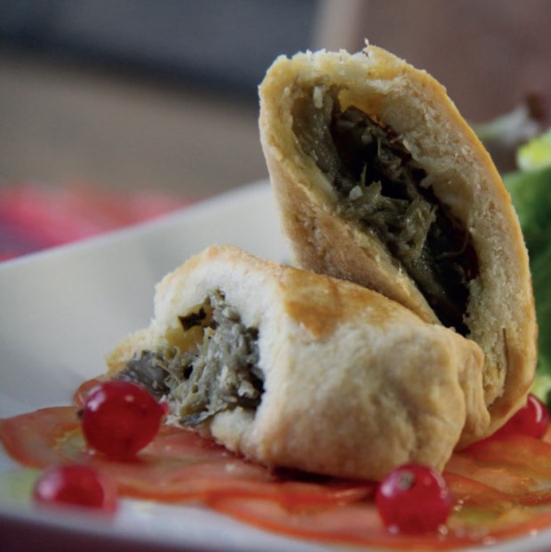 Um exemplo de um prato (receita também disponível no livro) que, sendo muito simples, consegue reunir, e valorizar, vários destes produtos é o hambúrguer Terrius, criado por Renato e Dalila Cunha, que leva Carnalentejana, mostarda de pimentos, pickles de cardos e espargos silvestres, queijo de Nisa e pão de boletos.