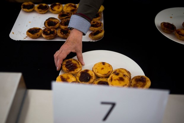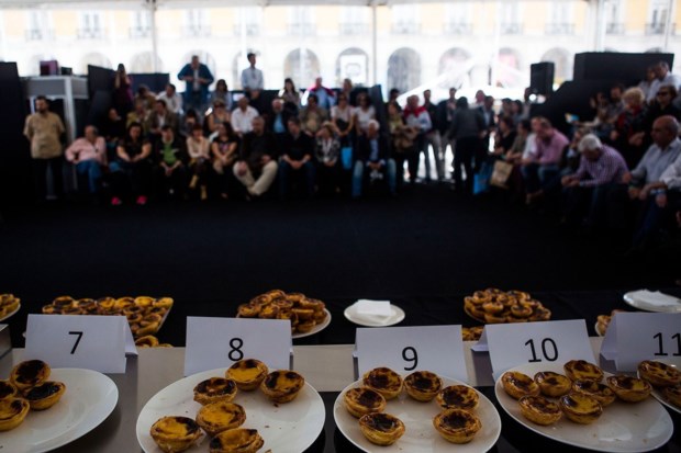 Ainda de portas fechadas, Virgílio Gomes (gastrónomo e presidente do júri), António Marques (chef pasteleiro), Cristina Castro (responsável do projecto “No Ponto”, que está a realizar um inventário da doçaria portuguesa), Domingo Soares Franco (enólogo) e Frederico Duarte (do projecto “Fabrico Próprio”) avaliaram o aspecto dos 12 pastéis, postos à sua frente sem identificação da pastelaria a que pertencem. Depois, já com a casa cheia, começaram por limpar o palato com um copo de água e uns trincaram enquanto outros voltaram a observar para ouvir o "crack" que indica que o pastel está fresco e crocante.