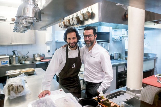 A Fugas conversou com ambos, a menos de duas horas do início do jantar. Na pequena cozinha do Belcanto, onde mal cabiam, as equipas dos dois chefs estavam já a trabalhar nos 22 pratos — quase todos com técnicas bastante complexas — que seriam servidos dali a pouco, enquanto Quique Dacosta e José Avillez davam entrevistas e a equipa de sala passava as toalhas a ferro e punha as mesas.
