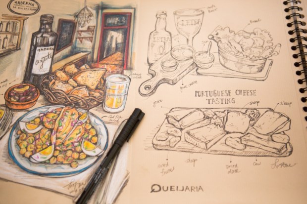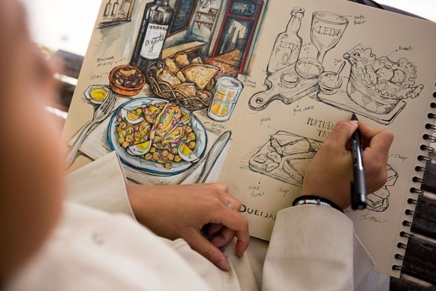 No último dia do Peixe em Lisboa (que terminou a 19 de Abril), era impossível não reparar na rapariga de traços asiáticos que parecia mais ocupada que qualquer outra pessoa. Um caderno de desenho, lápis, em cima da mesa pratos dos vários restaurantes representados no festival, e ela, atarefada, a desenhá-los. Mariscos e peixes iam ganhando forma no papel como se o prato se fosse transferindo a pouco e pouco para a folha.